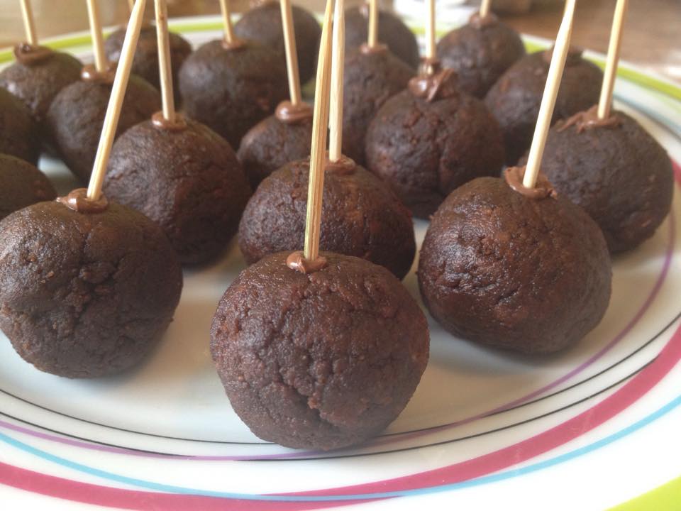 Dans un récipient, émietter le gateau à l'aide d'une fourchette. Procéder par petits morceaux. Ajouter le Nutella et bien mélanger jusqu'à obtenir une pâte homogène.Former des boules bien rondes, en les roulant dans la paume de la main.Insérer un bâtonnet avec du Nutella (pour que les batons soient bien fixés) pour en faire des sucettes. Mettre au frais pendant au moins 30min.